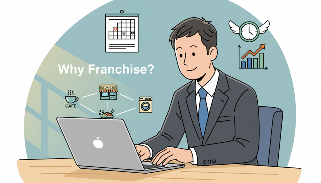 サラリーマンがフランチャイズを検討する際には、自分が現場に入る時間、本業との両立、初期投資の負担を総合的に見て業種を選ぶことが重要です。特に、副業から始める場合は、オーナー不在でも回りやすい仕組みになっているかどうかが鍵になります。