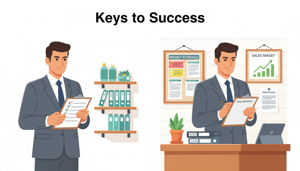 フランチャイズに参加すれば自動的に成功できるわけではありません。ブランド力や仕組みはあくまで土台であり、その上にどう運営を積み重ねるかで成果が大きく変わります。特にサラリーマンが副業として取り組む場合、本業との両立や時間の制約など、一般的なオーナーとは違った前提条件があります。